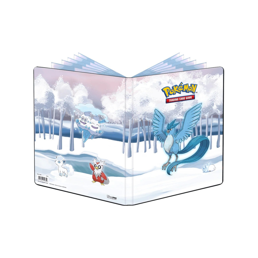 Pokemon Frosted Forest 9-žepni album za shranjevanje kart. Mehke platnice, zapira se z elastiko. Vsebuje 20 neodstranljivih map, do 360 pregledno zloženih kart. Mere: 25 x 31 cm.